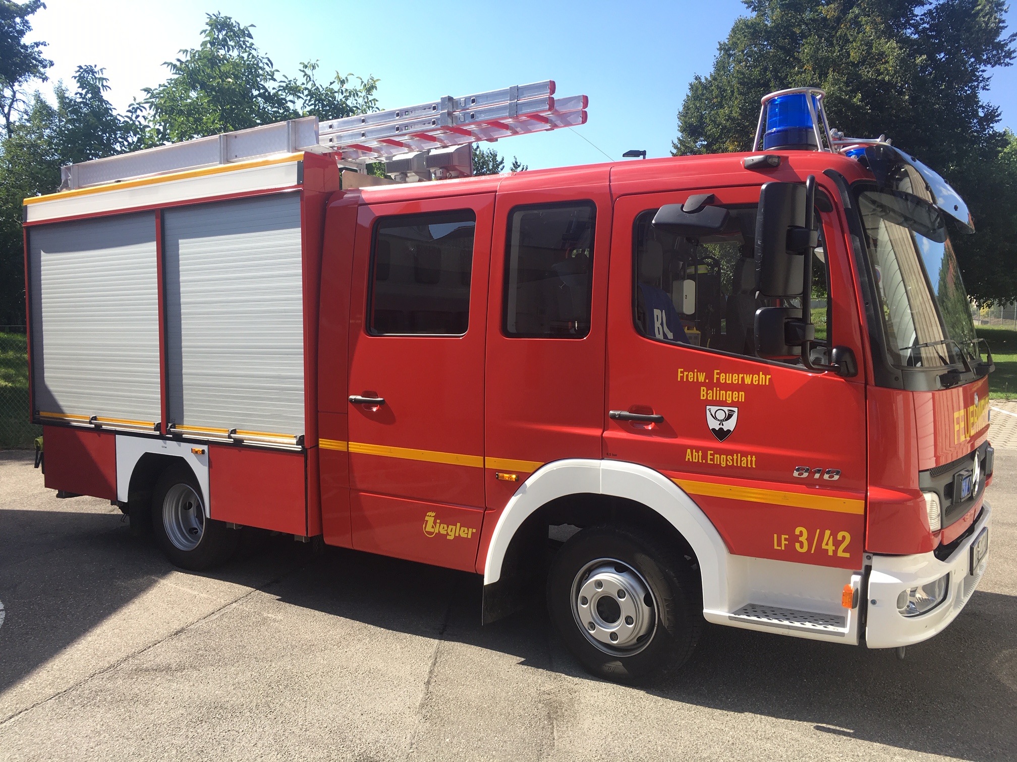 Löschgruppenfahrzeug 10/6 Funkrufname: Florian Balingen 3/42 Baujahr: 2006 Besatzung: 1/8 Aufgaben: Brandbekämpfung, einfache technische Hilfeleistung |